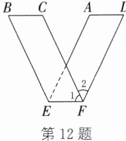 12. 如图所示为用平行四边形纸条沿对边$AB$、$CD上的点E$、$F所在的直线折成的V$字形图案.已知$∠2= 50^{\circ }$,则$∠1$的度数是______.