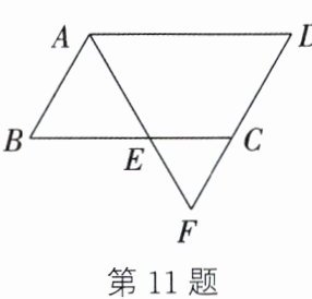 11. 如图,$E是□ ABCD的边BC$上的一点,且$AB= BE$,连结$AE$,并延长$AE与DC的延长线交于点F$,$∠F= 60^{\circ }$,则$∠D$的度数是______.