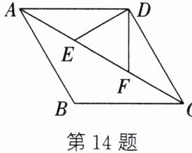 14.(9分)(济南中考)如图,在菱形ABCD中,E、F是对角线AC上的两点,连结DE、DF,$∠ADF= ∠CDE$.求证:$AE= CF$.