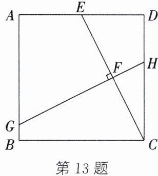 13. 如图,在正方形ABCD中,E是边AD的中点,F是CE上一点.过点答案讲解F作$GH⊥CE$,分别交AB、CD于点G、H.若$BG= 1,CH= 5$,则AG的长为____.