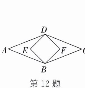 12. 如图,在由菱形和正方形组成的装饰图案中,已知菱形ABCD的面积是$500cm^{2}$,正方形DEBF的面积是$200cm^{2}$,则对角线AC的长是____cm.