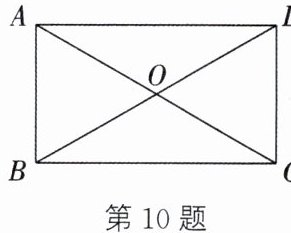 10. 如图,在矩形ABCD中,对角线AC、BD相交于点O,$∠BOC= 120^{\circ },DC= 3cm$,则AC的长为____cm.