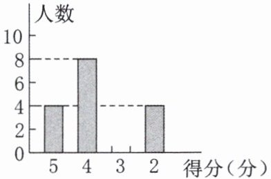 (1) 甲班得分为 3 分的人数为 20-(4+8+4)=4,补全统计图如图所示.