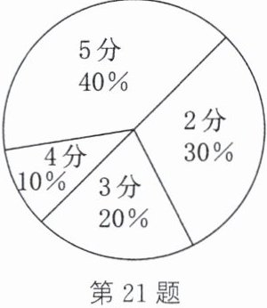 21. (10 分)某校举行安全知识问答竞赛. 每班选 20 名同学参加比赛. 根据答对题目的数量得分,分别为 5 分、4 分、3 分、2 分. 该校将八年级甲班和乙班的成绩整理并绘制成如下的统计图.