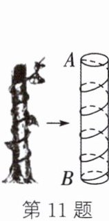 11. 新考向 数学文化 我国古代有这样一个数学问题:“枯木一根直立在地上,高2丈,周3尺,有葛藤自根缠绕而上,五周而达其顶,问葛藤之长几何?”题意:如图,把枯木看作一个圆柱,因一丈是十尺,则该圆柱的高为20尺,底面周长为3尺,有葛藤自点B处缠绕而上,且缠绕五周后其末端恰好到达点A处,则问题中葛藤的长度是 ( )