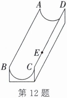 12. 如图所示为某滑雪场U型场地的示意图,该U型场地可以看作是一个长方体去掉一个“半圆柱”而成,中间可供滑行部分的截面是半径为3的半圆,其边缘AB= CD= 16.点E在CD上,CE= 4,则从点A滑到点E的最短滑行路程约为______.(π取3)