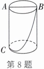 8. (金华中考)如图,圆柱的底面直径为AB,高为AC.一只蚂蚁在点C处,沿圆柱的侧面爬到点B处.现将圆柱侧面沿AC剪开,在侧面展开图上画出蚂蚁爬行的最近路线,正确的是 ( )