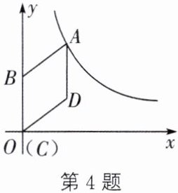 4. 如图,在平面直角坐标系中,菱形$ABCD的顶点C与原点O$重合,点$B在y$轴的正半轴上,点$A在反比例函数y= \frac {k}{x}(k>0,x>0)$的图象上,点$D的坐标为(4,3)$.