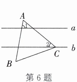 6.(鞍山中考)如图,直线$a// b$,等边三角形ABC的顶点C在直线b上,$∠2= 40^{\circ }$,则$∠1$的度数为( )