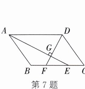 7. 如图,在$□ ABCD$中,$AB= 5,AD= 7$,AE平分$∠BAD$交BC于点E,过点D作$DG⊥AE$于点G并延长,交BC于点F,则线段EF的长为( )