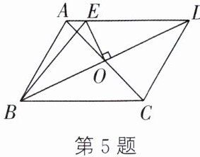 5. 如图,在$□ ABCD$中,$AB= 6cm,AD= 8cm$,AC、BD相交于点O,$OE⊥BD$交AD于点E,则$\triangle ABE$的周长为( )