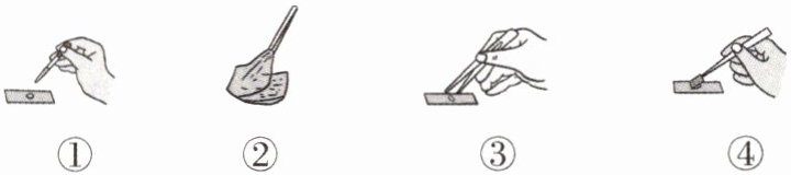 D.④用镊子夹起盖玻片,使它的一边先接触载玻片上的液滴,再将盖玻片缓缓放平盖在材料上