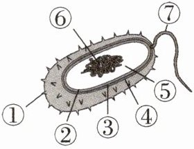 1.D 细菌无成形的细胞核,⑥是 DNA 集中的区域,A 正确。细菌细胞和植物细胞都有的结构是②细胞膜,③细胞壁和⑤细胞质,B 正确。④荚膜有保护作用,C 正确。①是菌毛,不具有运动功能;⑦为鞭毛,可以帮助细菌在液体中游动,D 错误。