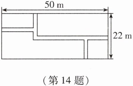 14. 如图,在长为 50 m、宽为 22 m 的长方形地面上修筑宽度都为 2 m 的道路,余下的部分种植花草,求种植花草部分的面积.
