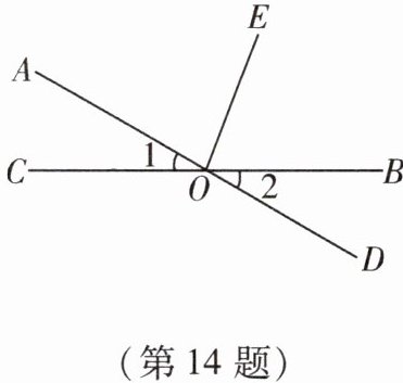 14. 如图,直线$AD与直线BC相交于点O$,$OE平分∠AOB$,$∠1 = 30^{\circ}$,求$∠EOD$的度数.