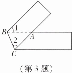 3. 将一张长方形纸片(足够长)折叠成如图所示图形,重叠部分是一个三角形(三角形$ABC$),$BC$为折痕,若$∠1= 44^{\circ }$,则$∠2$的度数为(