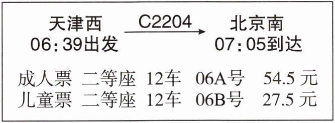 3. 妈妈带着贝贝从天津去北京看望奶奶。妈妈从网上购票(贝贝购买的是儿童票)。在支付票款时发现有 8.61 元红包可以用,妈妈只需再支付多少钱?