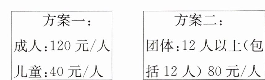 (2) 成人4人,儿童8人,选哪种方案合算?