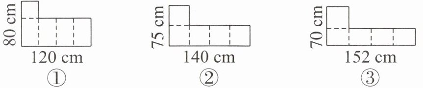 6. 下图中是三块形状不同的铁皮,将每块铁皮沿虚线弯折后焊接成一个底面是正方形的无盖的长方体铁桶。其中,装水最多的铁桶是由铁皮( )焊接的。