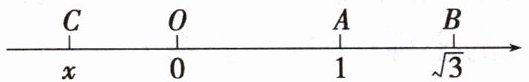 6. 如图,数轴上从左至右依次有$C,O,A,B$四个点,分别对应的数字为$x,0,1和\sqrt{3}$,且$AB= CO$.
