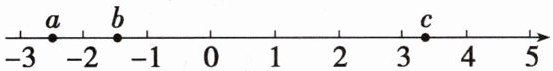 由数轴可知:$a\approx -2.5$,$b\approx -1.5$,$c\approx 3.5$。