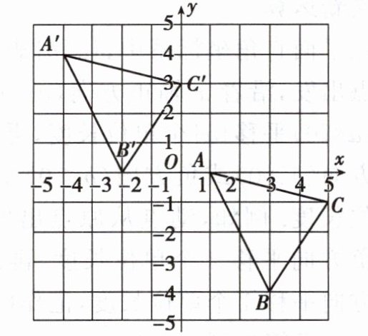 由A(1,0)和A的对应点A'(-4,4)得,三角形A'B'C'是由三角形ABC向左平移5个单位,再向上平移4个单位得到的。