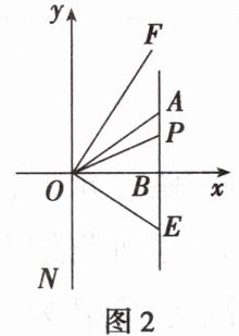 (3)如图2,$P是线段AB$所在直线上一动点,连接$OP$,$OE平分\angle PON$,交直线$AB于点E$,作$OF\perp OE$,请探究点$P在直线AB$上运动时,$\angle OPE与\angle FOP$的数量关系,并证明.