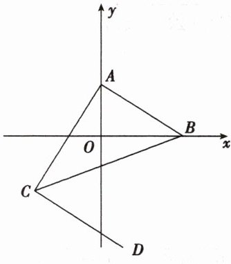 (2)将线段$AB平移到CD$,点$A的对应点为C(-2,t)$,如图所示. 若三角形$ABC的面积为9$,求点$D$的坐标.