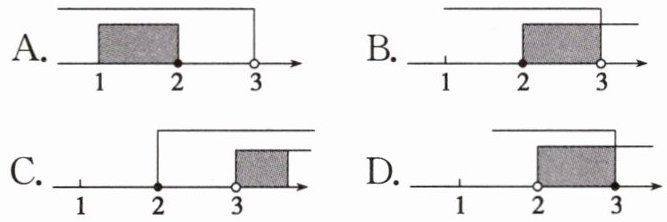 在数轴上表示为从2(实心点)向右到3(空心点)的线段。