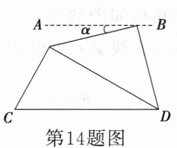 14. 一副三角板如图摆放,直线AB//CD,则∠α的度数是______.