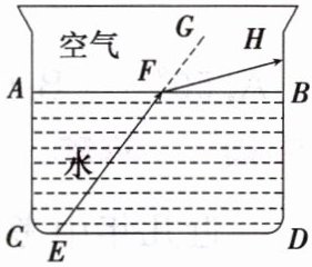 15. 光线在不同介质中传播速度不同,从一种介质射向另一种介质时会发 生折射. 如图,水面AB与水杯下沿CD平行,光线EF从水中射向空气时发生折射,光线变成FH,点G在射线EF上,已知∠HFB= 20°,∠FED= 45°,则∠GFH的度数为______.