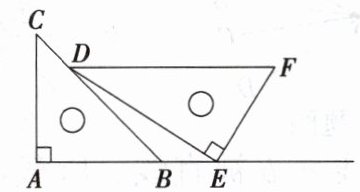 解:由图可知,含30°角的直角三角板中,∠C=30°,∠A=60°,∠ABC=90°;含45°角的直角三角板中,∠F=45°,∠FDE=45°,∠DEF=90°。