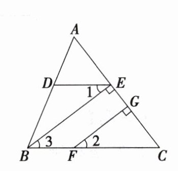 16. 已知BE⊥AC于点E,FG⊥AC于点G,∠1= ∠2,请判定∠ADE与∠ABC的大小关系,并说明理由.