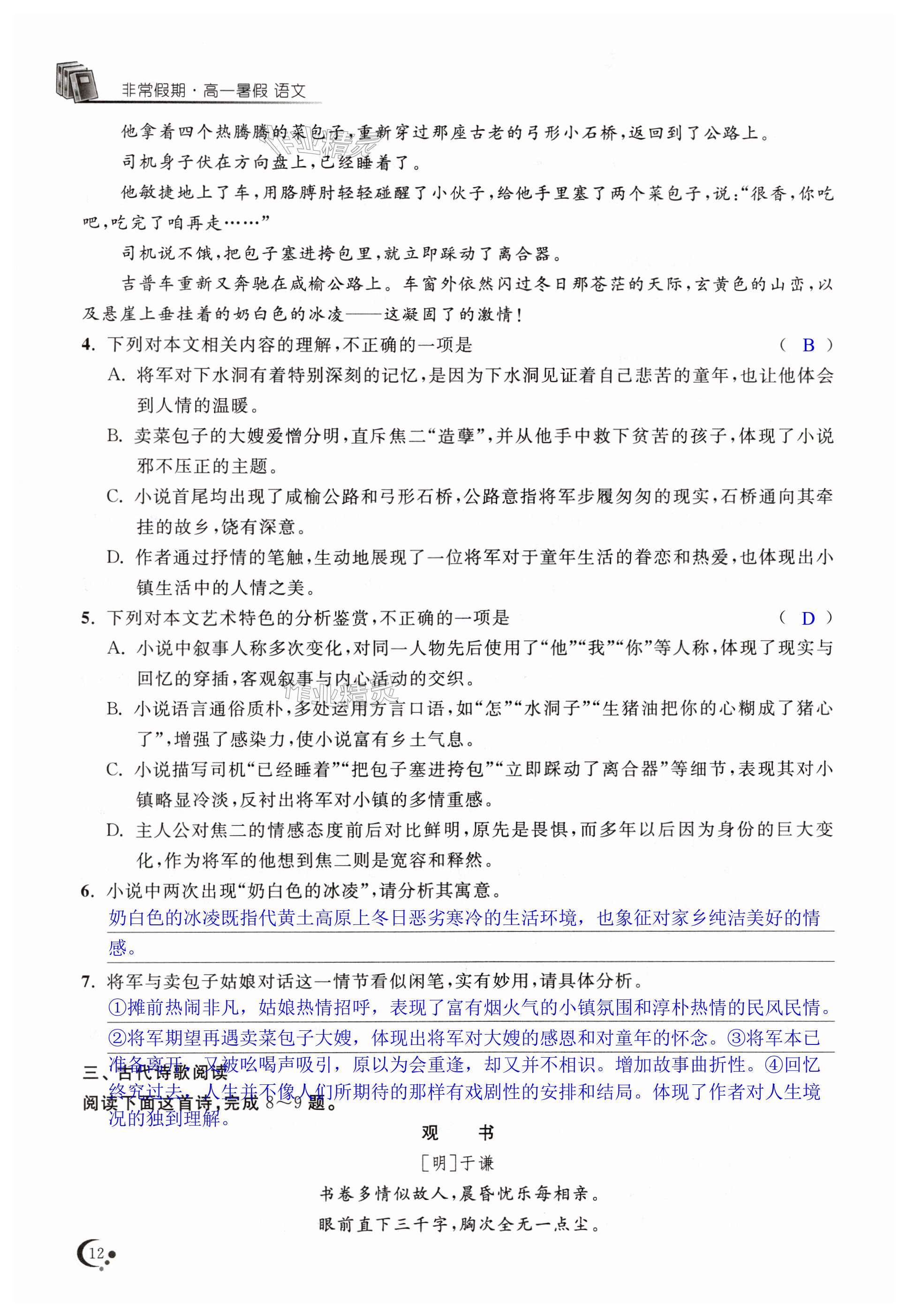 注:目前有些书本章节名称可能整理的还不是很完善,但都是按照顺序排列的,请同学们按照顺序仔细查找。练习册 2025年非常假期南京出版社高一语文通用版 答案主要是用来给同学们做完题方便对答案用的,请勿直接抄袭。