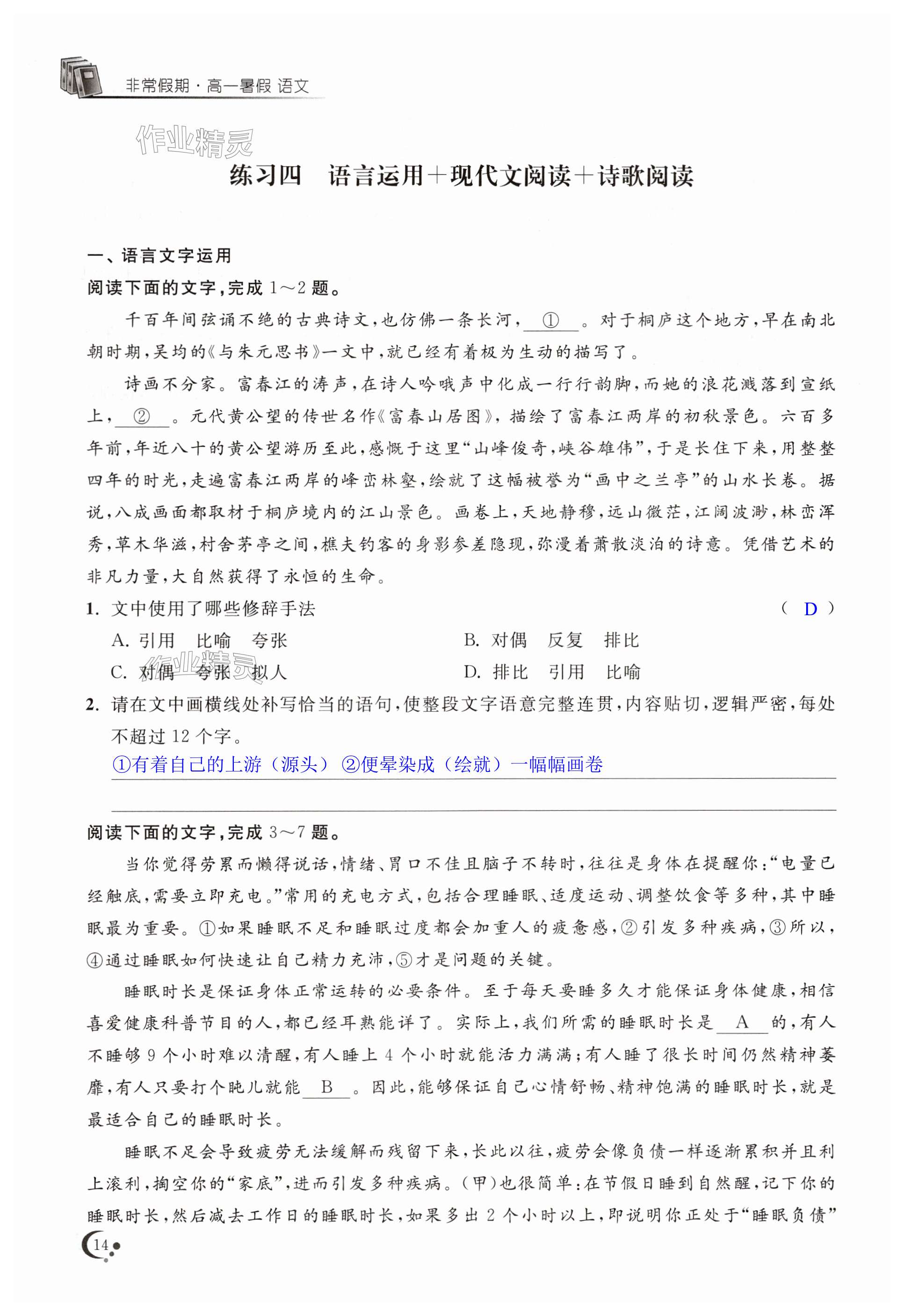 注:目前有些书本章节名称可能整理的还不是很完善,但都是按照顺序排列的,请同学们按照顺序仔细查找。练习册 2025年非常假期南京出版社高一语文通用版 答案主要是用来给同学们做完题方便对答案用的,请勿直接抄袭。