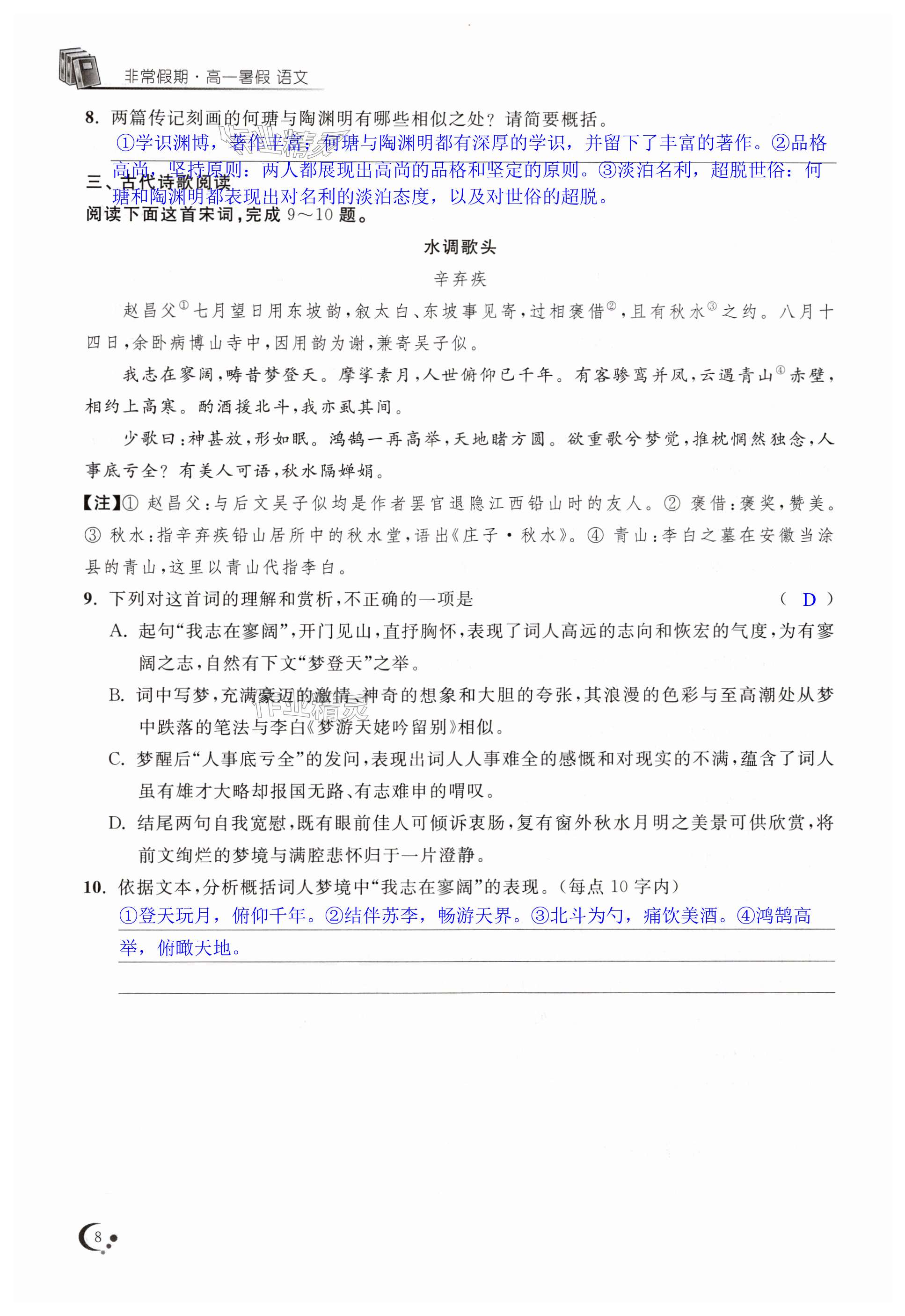 注:目前有些书本章节名称可能整理的还不是很完善,但都是按照顺序排列的,请同学们按照顺序仔细查找。练习册 2025年非常假期南京出版社高一语文通用版 答案主要是用来给同学们做完题方便对答案用的,请勿直接抄袭。
