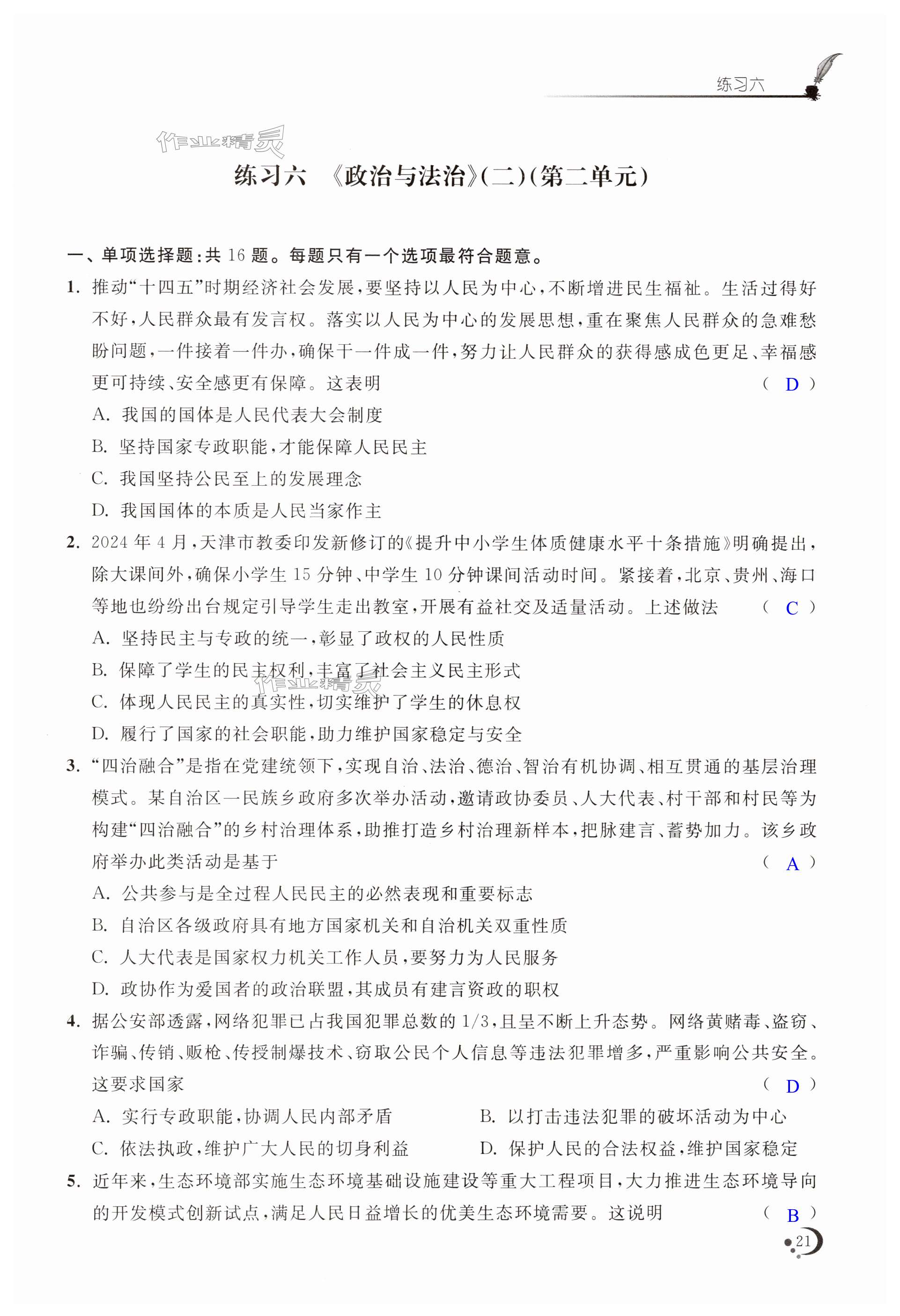 注:目前有些书本章节名称可能整理的还不是很完善,但都是按照顺序排列的,请同学们按照顺序仔细查找。练习册 2025年非常假期高一道德与法治通用版南京出版社 答案主要是用来给同学们做完题方便对答案用的,请勿直接抄袭。