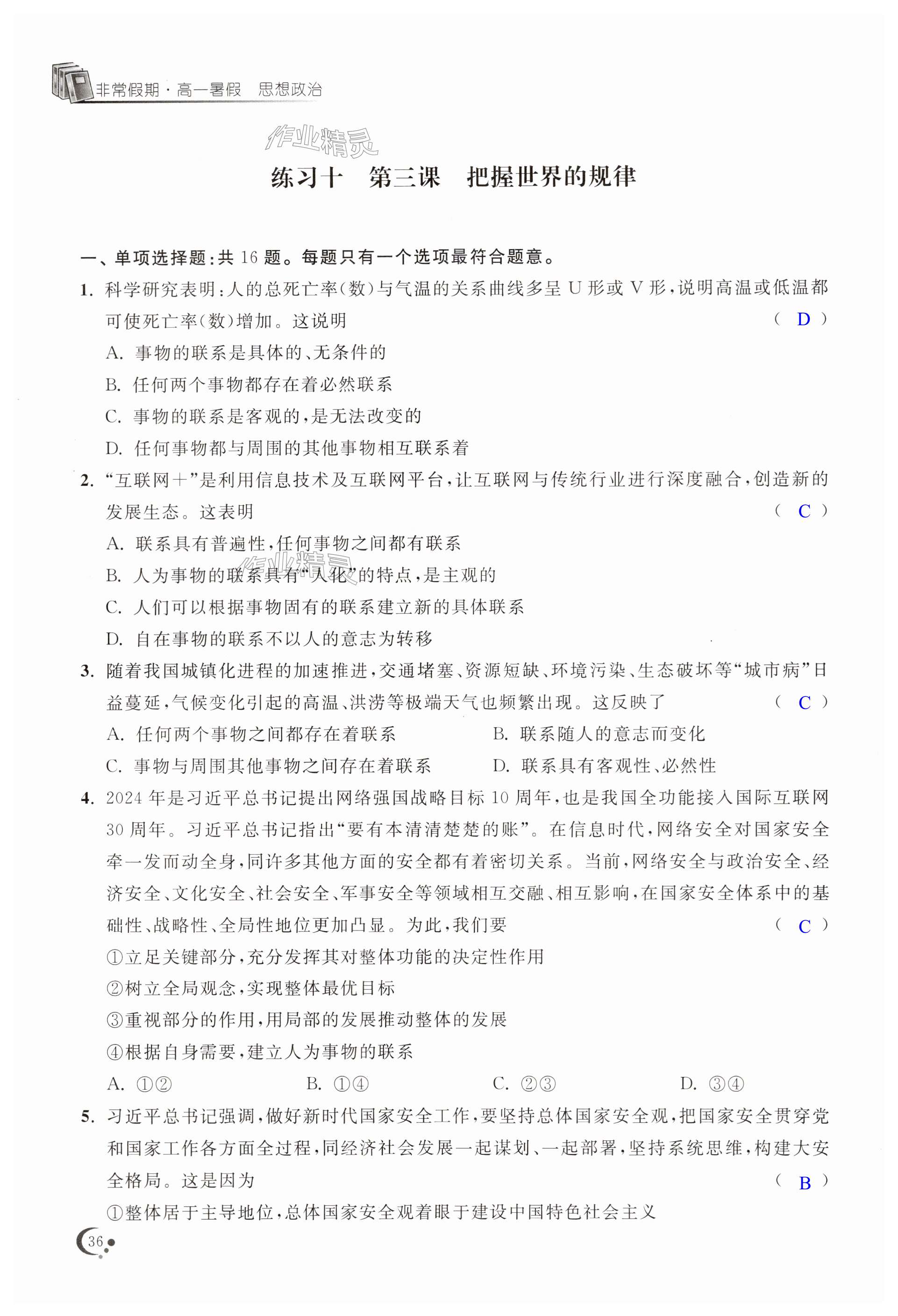 注:目前有些书本章节名称可能整理的还不是很完善,但都是按照顺序排列的,请同学们按照顺序仔细查找。练习册 2025年非常假期高一道德与法治通用版南京出版社 答案主要是用来给同学们做完题方便对答案用的,请勿直接抄袭。