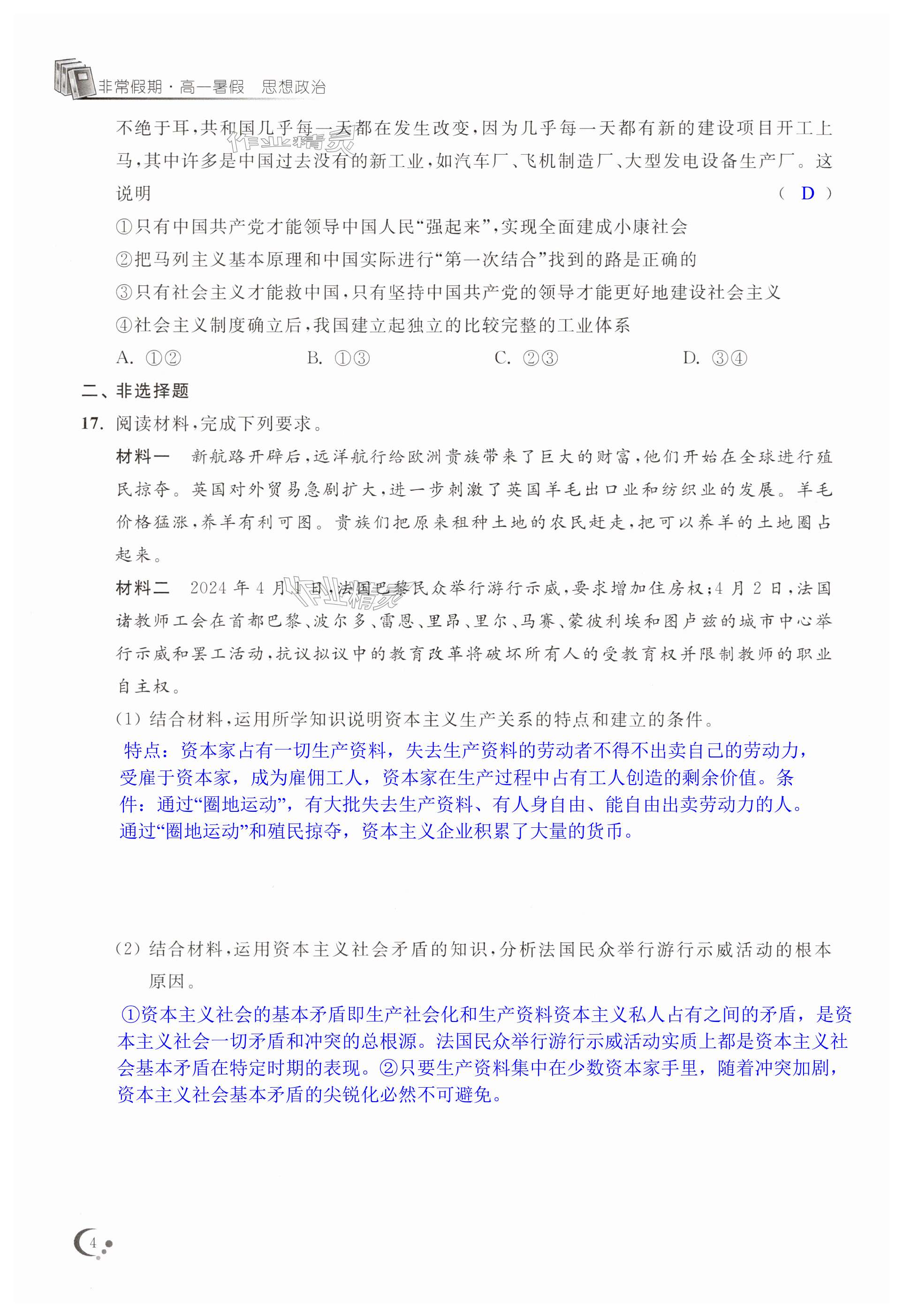 注:目前有些书本章节名称可能整理的还不是很完善,但都是按照顺序排列的,请同学们按照顺序仔细查找。练习册 2025年非常假期高一道德与法治通用版南京出版社 答案主要是用来给同学们做完题方便对答案用的,请勿直接抄袭。