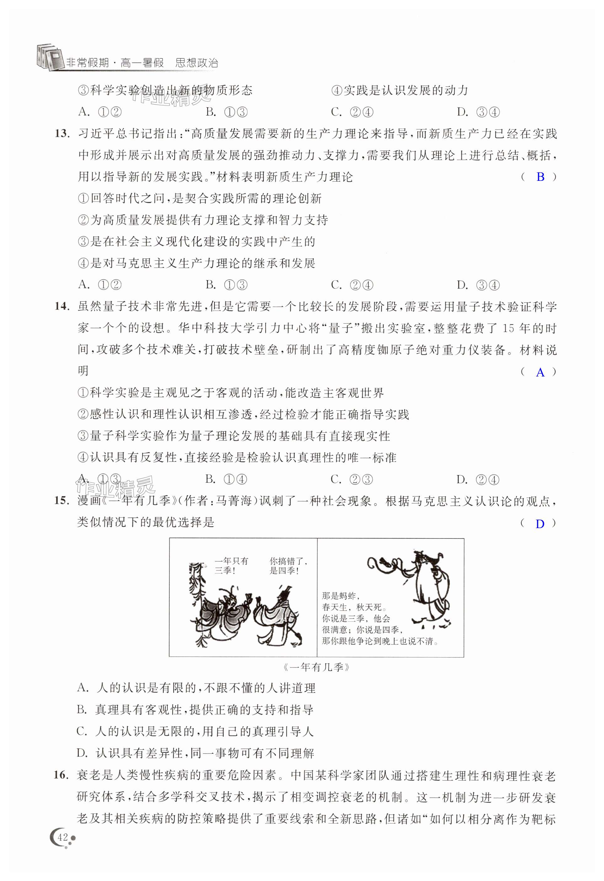 注:目前有些书本章节名称可能整理的还不是很完善,但都是按照顺序排列的,请同学们按照顺序仔细查找。练习册 2025年非常假期高一道德与法治通用版南京出版社 答案主要是用来给同学们做完题方便对答案用的,请勿直接抄袭。