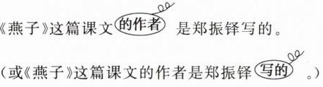 1. 《燕子》这篇课文的作者是郑振铎写的。(用修改符号在原句上修改病句)