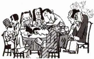 (3)示例:适合。这幅漫画展示了一家人团聚进餐时的情景。年轻人和小孩每个人手里都拿着一部手机,眼睛紧盯着它,没有和老人进行任何交流。右边两位老人很生气,也很无奈地瞪大眼睛看着他们。揭示沉溺于手机会造成情感上的缺失这一主题,能够起到警醒的作用,呼吁人们要从情感上多关注父母,这才是真正的孝。示例:不适合。这幅漫画展示了一家人团聚进餐时的情景。年轻人和小孩每个人手里都拿着一部手机,眼睛紧盯着它,没有和老人进行任何交流。右边两位老人很生气,也很无奈地瞪大眼睛看着他们。揭示沉溺于手机会造成情感上的缺失这一主题,不能体现“孝”这一主题,所以不适合。