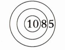 4. 小力在射击馆玩射击游戏(靶纸如右下图),根据圈数不同,可以得到5分、8分、10分。小力打了三次,都中靶。请你想想小力3次的总分可能是多少?