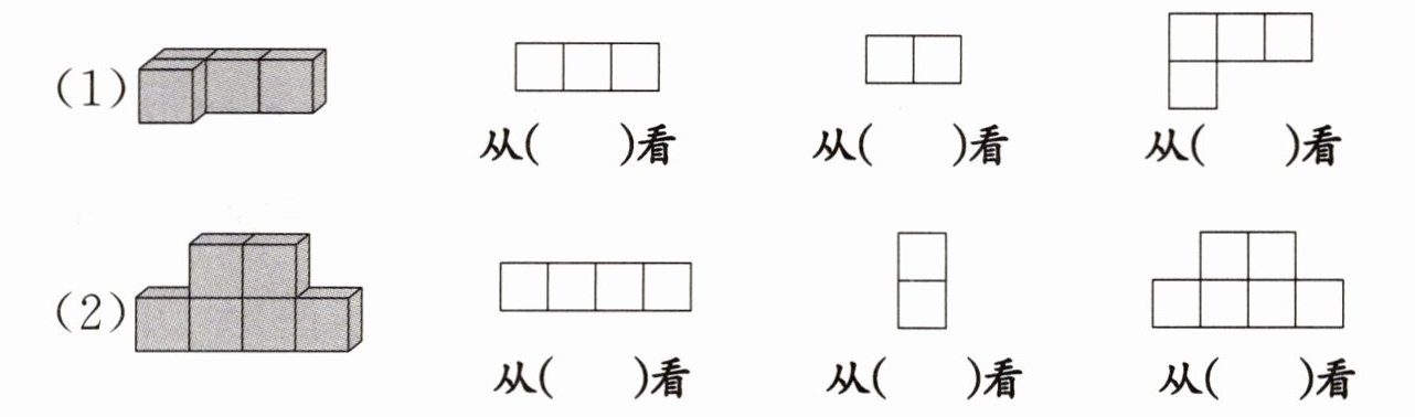 1. 下面右图的图形分别是从哪个方向看到的?填“前面”“上面”或“左面”。