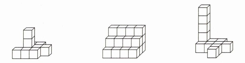4. 数一数,下面的物体分别是由多少个小正方体摆成的?