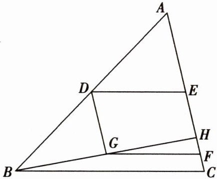 23. 如图所示,在$\triangle ABC$中,点D,E分别为AB,AC的中点,点H在线段CE上,连接BH,点G,F分别为BH,CH的中点.