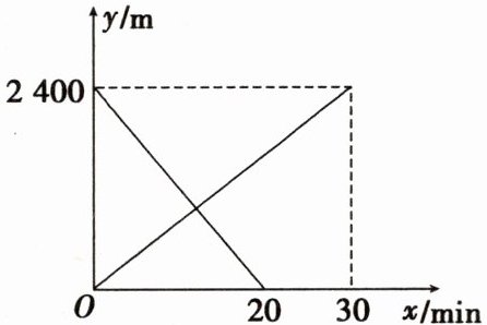 4. 小丽从甲地匀速步行去乙地,小华骑自行车从乙地匀速前往甲地,同时出发。两人离甲地的距离$y(m)与出发时间x(min)$之间的函数关系如图所示。