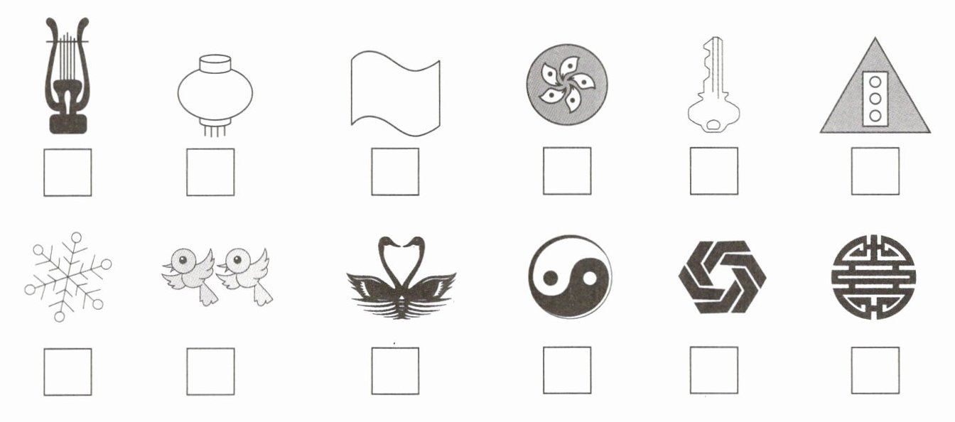 二、下列图形是轴对称图形的在$□$里打“√”,不是的打“×”。