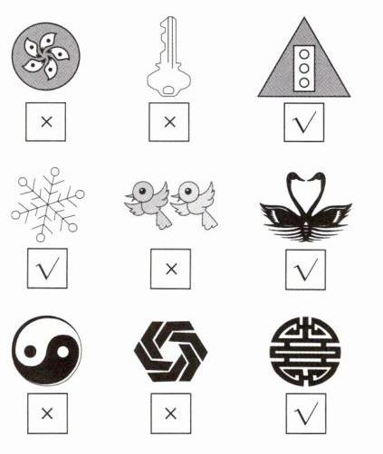 三、用镜子照一照,看到的图形是哪一个?画“√”。