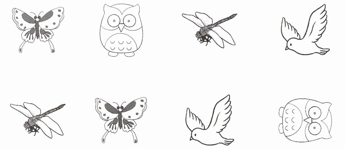 1. 下面的哪些图形可以通过平移互相重合?连一连。